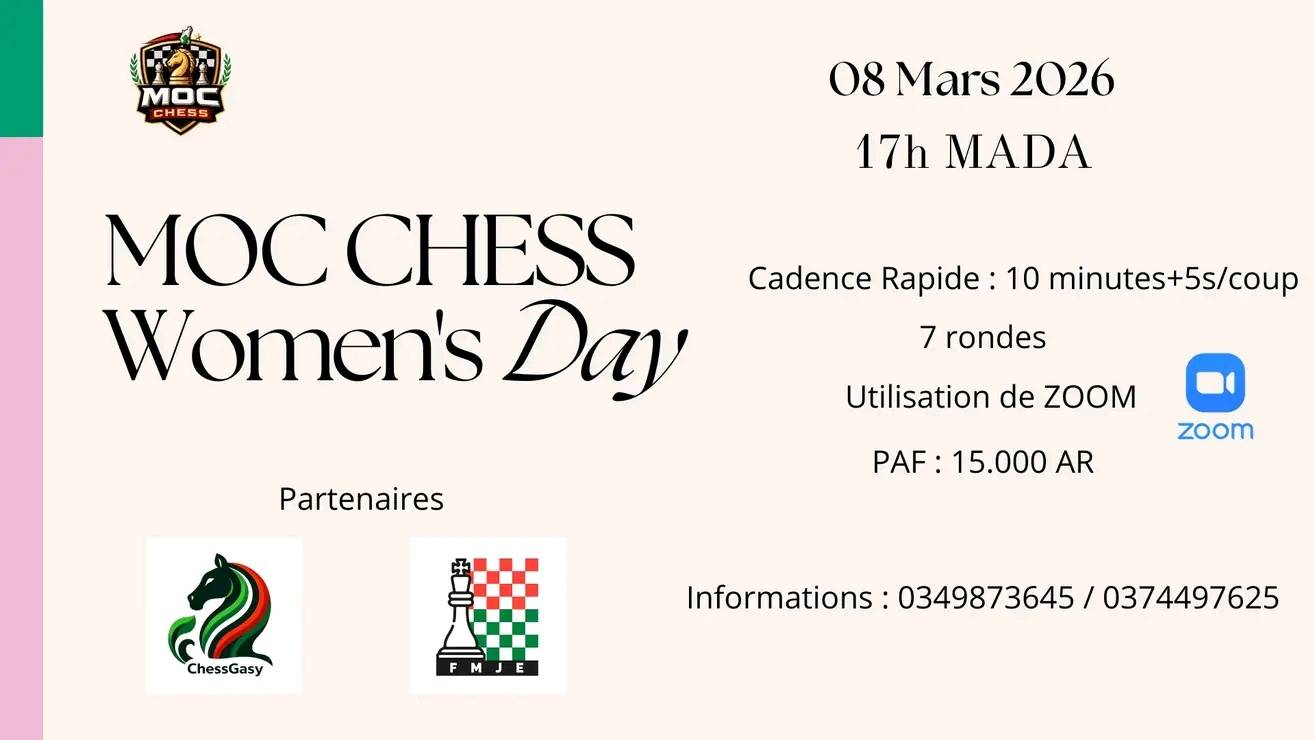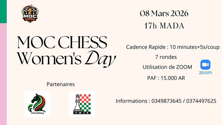 À l’occasion de la Journée mondiale des droits des femmes 2026, plusieurs événements d’échecs sont organisés à Antananarivo et en ligne pour promouvoir la participation des femmes et des jeunes filles au jeu d’échecs.