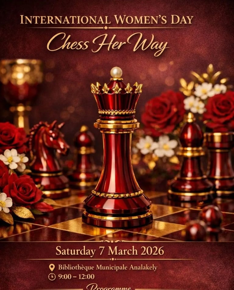 Les célébrations débuteront le 7 mars 2026 de 9h à 12h avec une séance d’initiation intitulée Chess Her Way, organisée à la Bibliothèque Municipale d’Analakely.